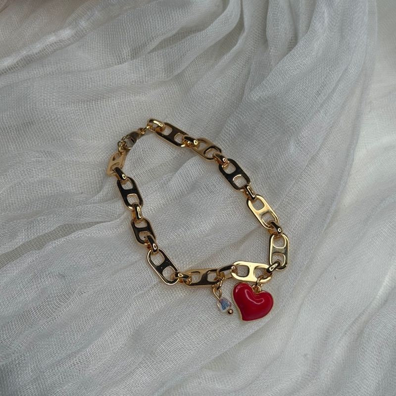 Βραχιόλι χειροποίητο minimal με επιχρυσωμένα στοιχεία, με προσεγμένο φινίρισμα και μια υπέροχη καρδιά και κρυσταλλάκι να κρέμεται. Συνδυάστετο με τα αντίστοιχα σκουλαρίκια και κολιέ.