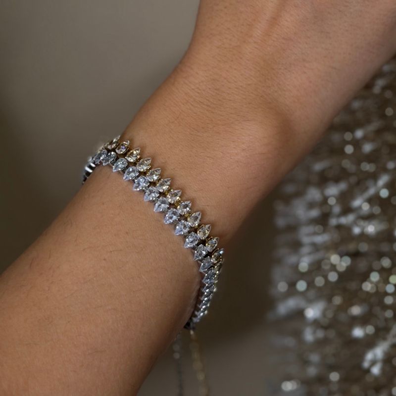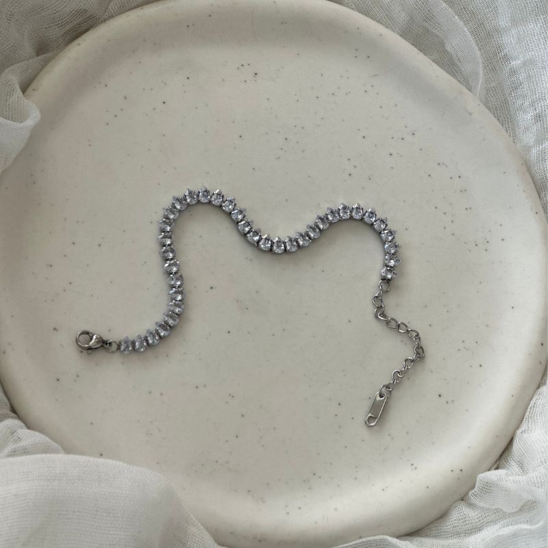 Ατσάλινo βραχιόλι ριβιέρα με αστραφτερά ζιργκον σε σχήμα δάκρυα.