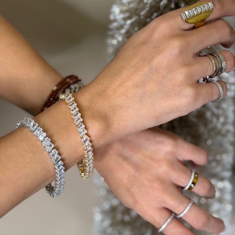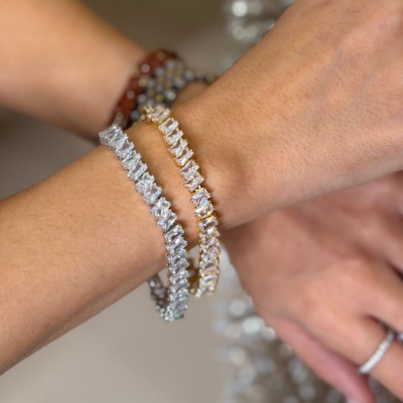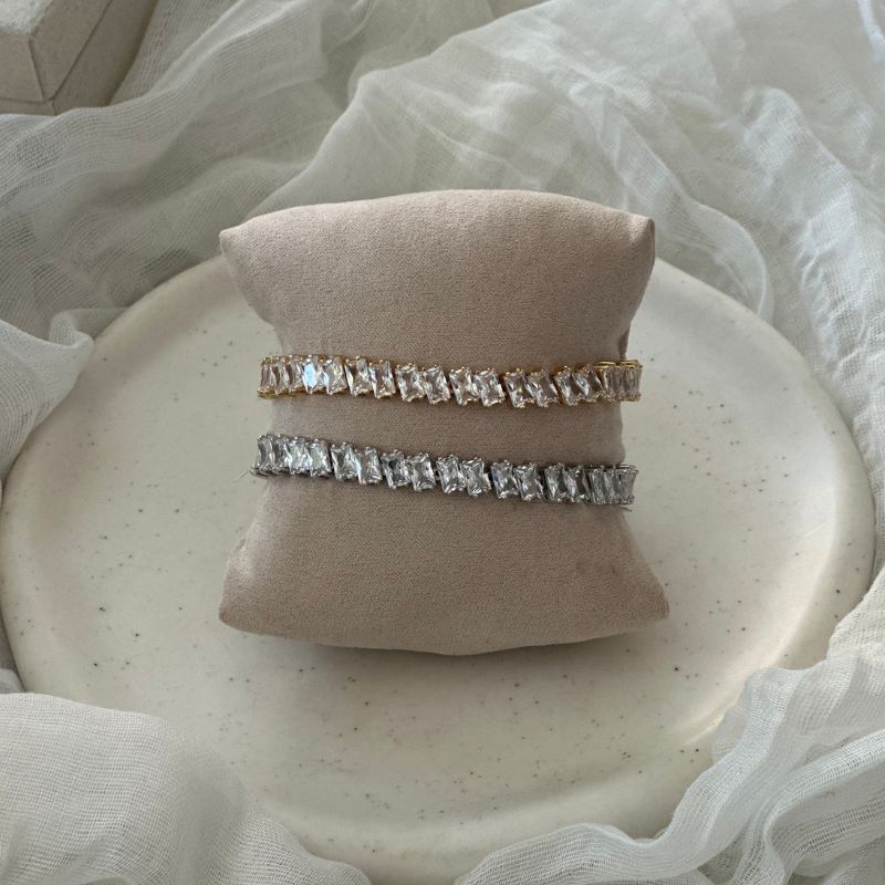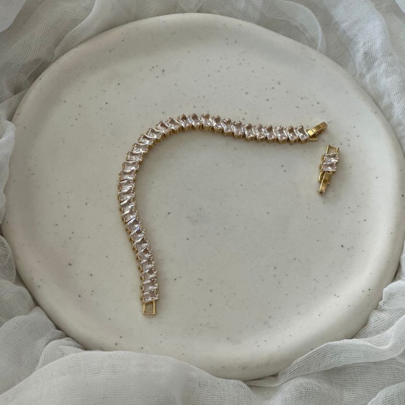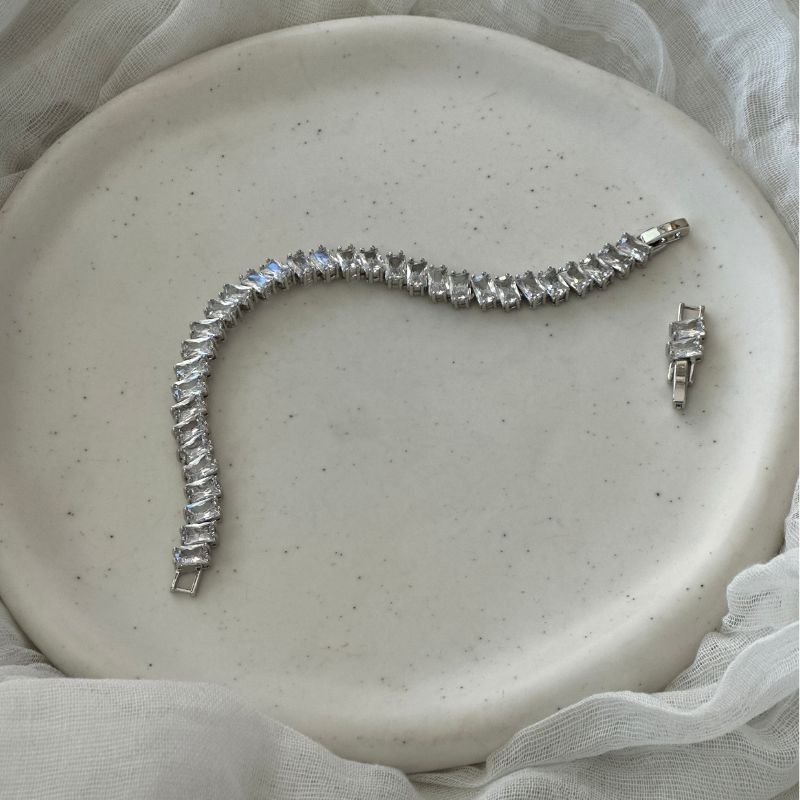 Ατσάλινo βραχιόλι ριβιέρα με αστραφτερά ζιργκον σε σχήμα δάκρυα.