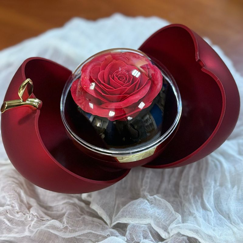 Πολυτελές κουτί μήλο ανοιγόμενο με τριαντάφυλλο κόκκινο και θήκη για σκουλαρίκια, δαχτυλίδι και κολιέ. Στείλτε μας πια επιλογή σας απο την παραγγελία σας θέλετε να βάλουμε μέσα. σας .