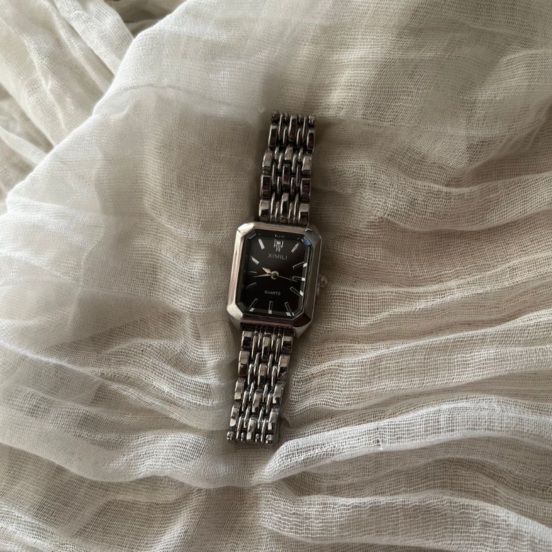 Ατσάλινο bracelet ρολόι με μαύρο καντράν στα 22εκ.