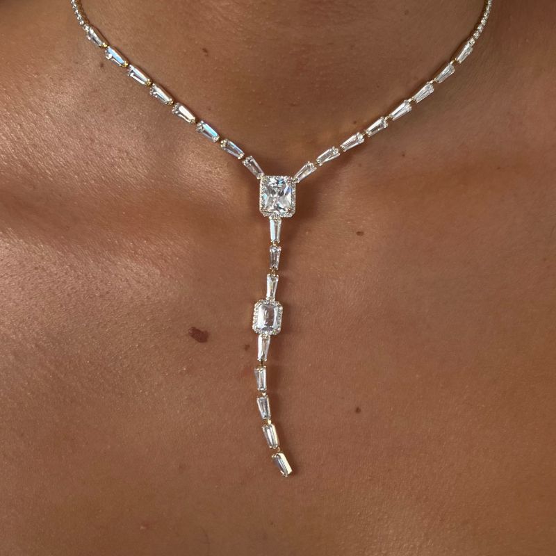 Περίτεχνο κολιε γεμάτο λαμπερά ζιργκόνια που θα ξετρελάνει όποιον το δει να στολίζει τον λαιμό σας!