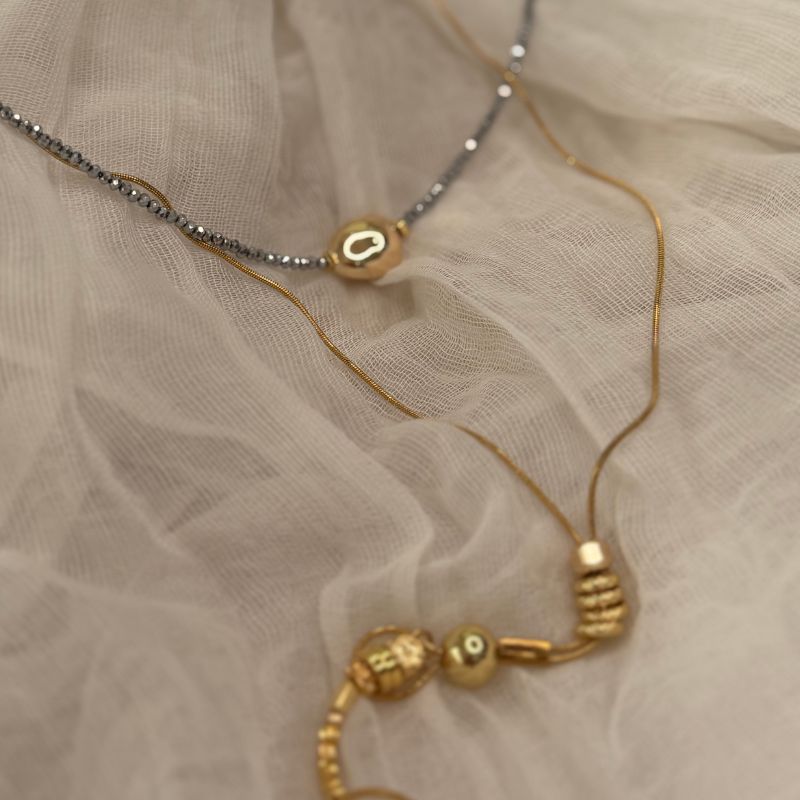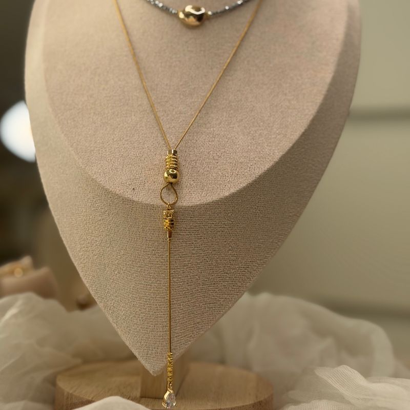 Χειροποίητο μακρύ κολιέ με ιδιαίτερo σχεδιασμό ,στοιχείο απο ζιργκον και λαμπερούς αιματίτες.