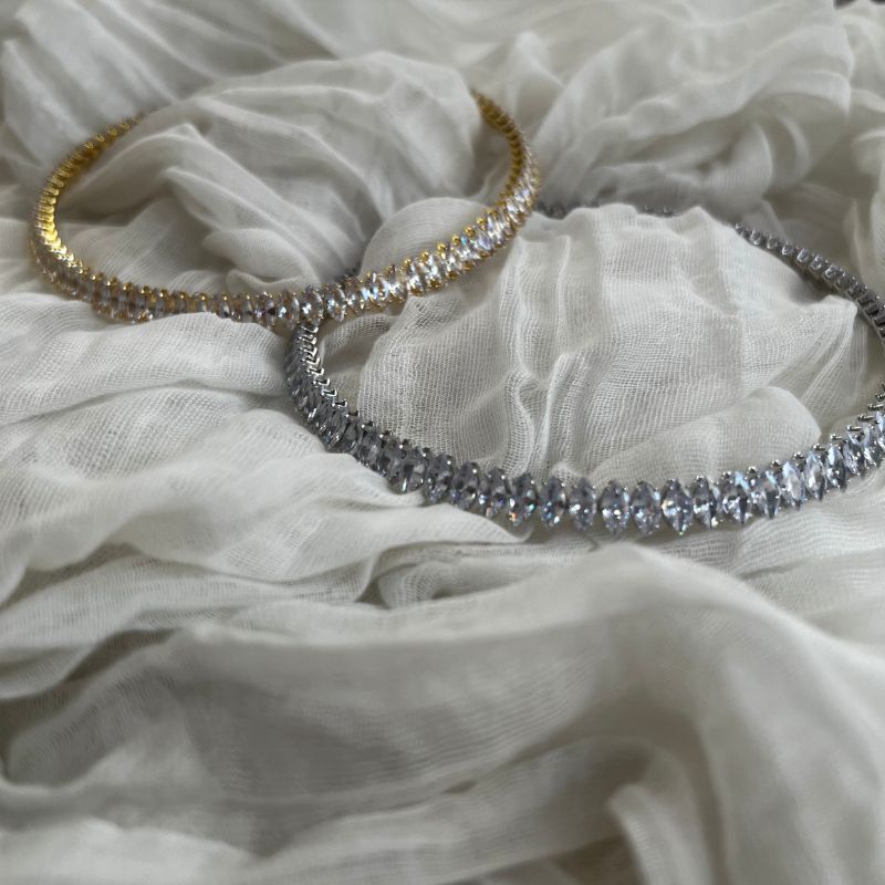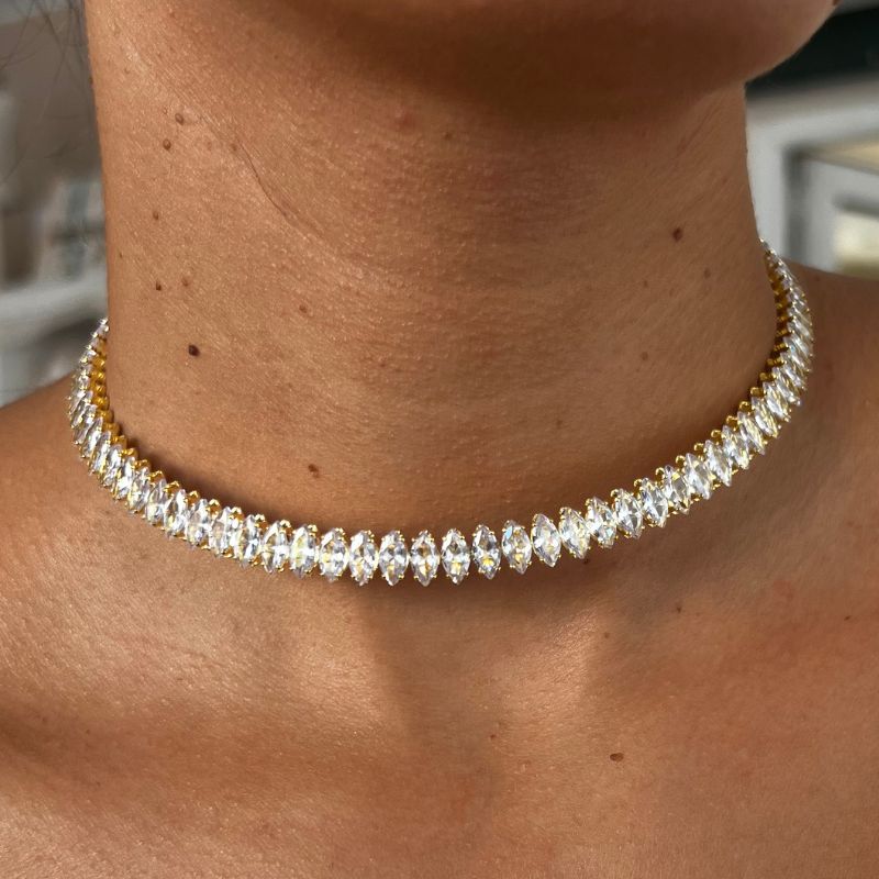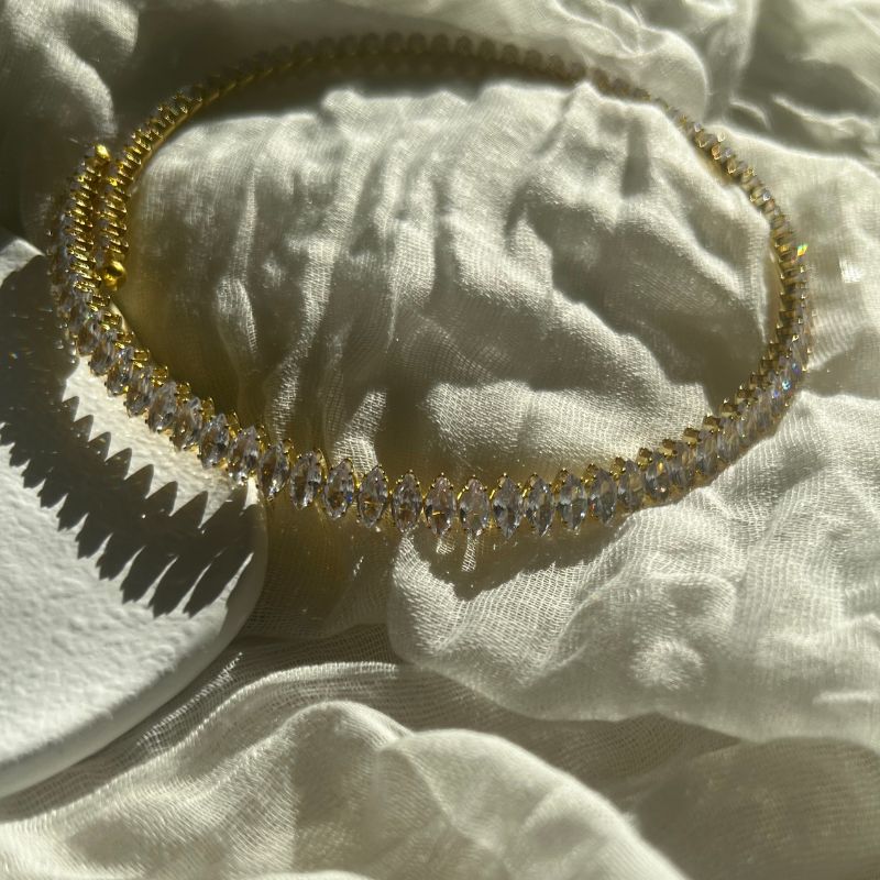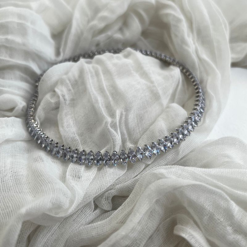 Λαιμός-τσόκερ ολόκληρο με αστραφτερά κρύσταλλα,έχει εύκαμπτο στεφάνι ώστε να προσαρμόζεται σε όλα τα μεγέθη.