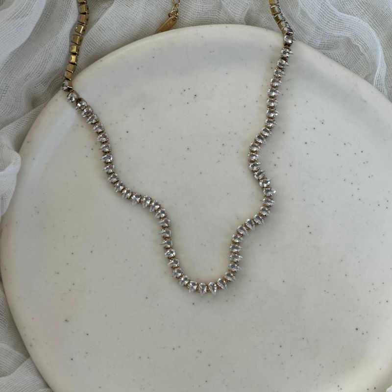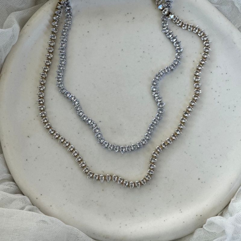Ατσάλινo κολιε ριβιέρα με αστραφτερά ζιργκον σε σχήμα δάκρυα.