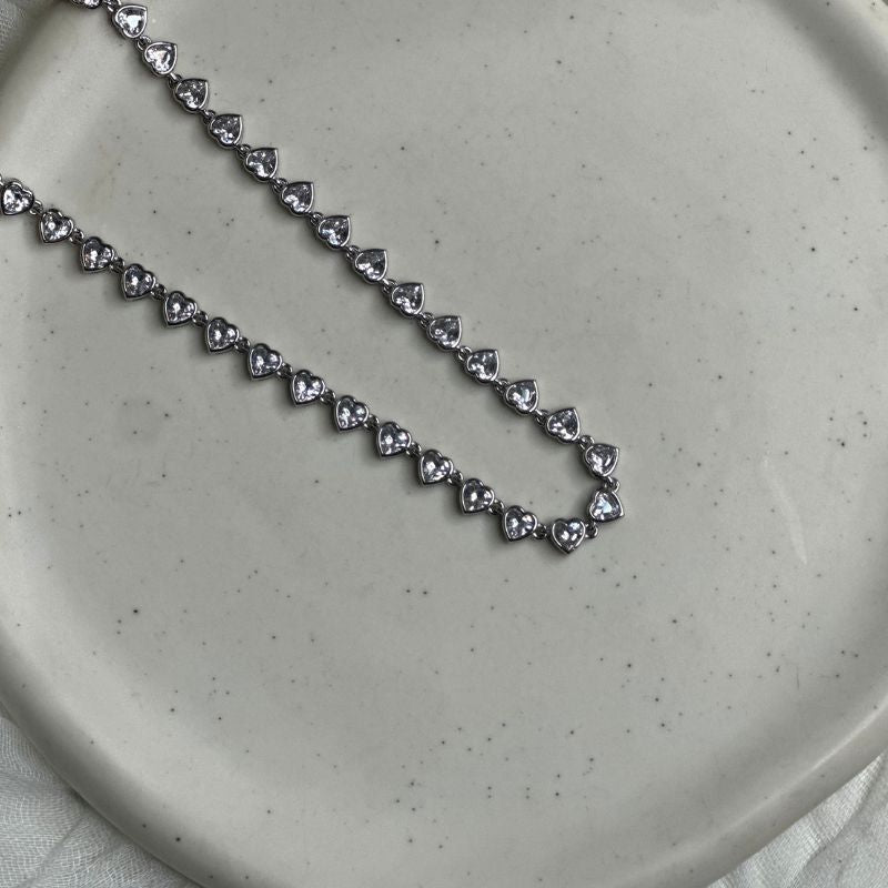 Ατσάλινο κολιε με αστραφτερά ζιργκόνια ,που θα απογειώσει την εμφάνιση σας και θα κάνει όλα τα βλέμματα να στραφούν πάνω σας!