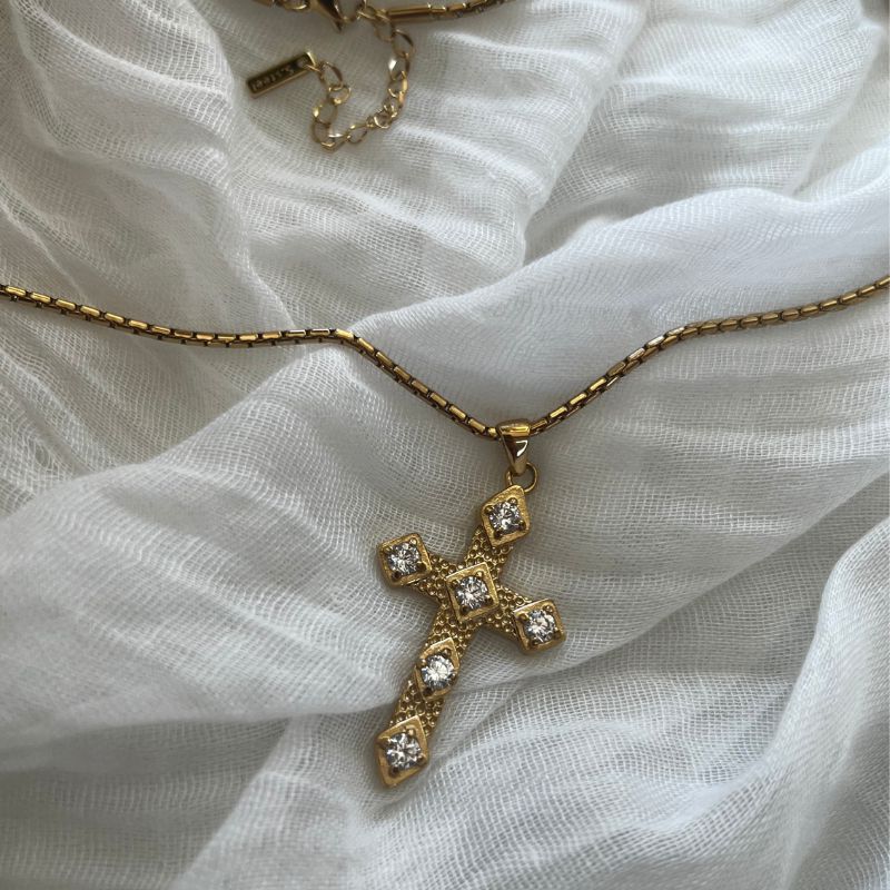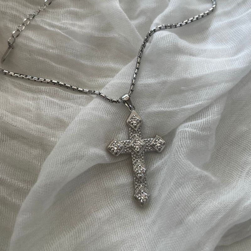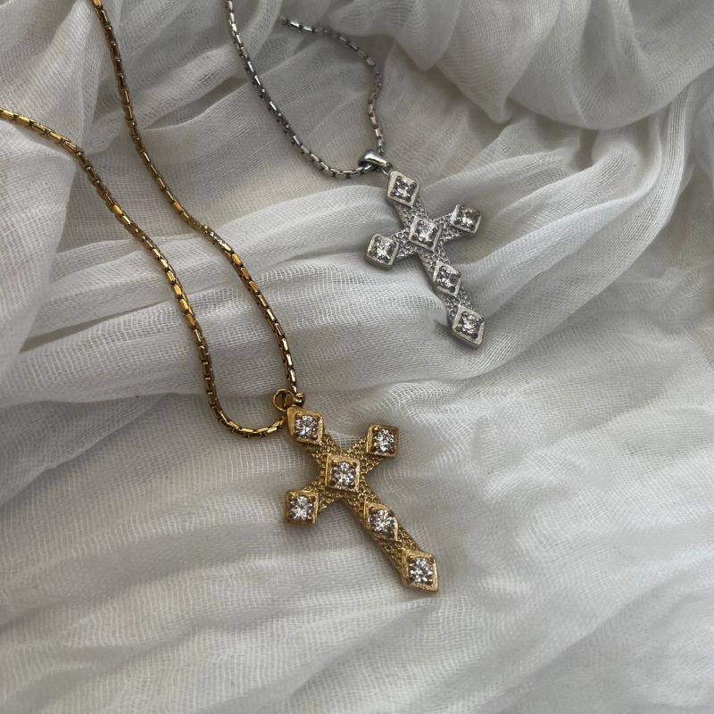 Ατσάλινη αλυσίδα και σταυρός με λαμπερά ζιργκον.