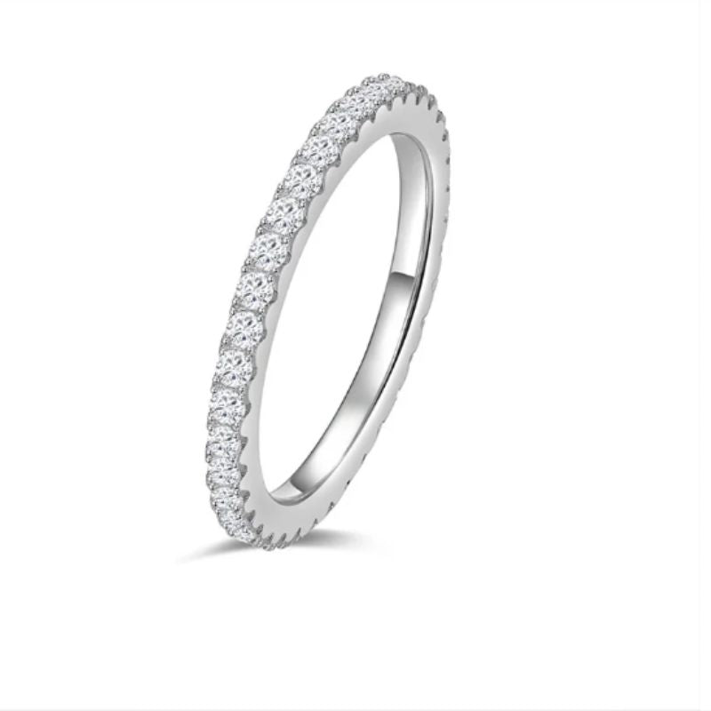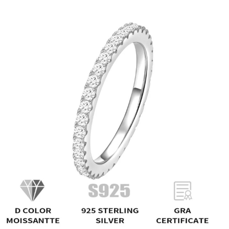 Λεπτό και κομψό eternity ring από ασήμι 925, διακοσμημένο με αυθεντική moissanite πέτρα υψηλής καθαρότητας. Συνοδεύεται από επίσημο Certificate για τη γνησιότητα και τα χαρακτηριστικά της πέτρας. Ένα premium, διαχρονικό κομμάτι με εξαιρετική λάμψη και αντοχή.
