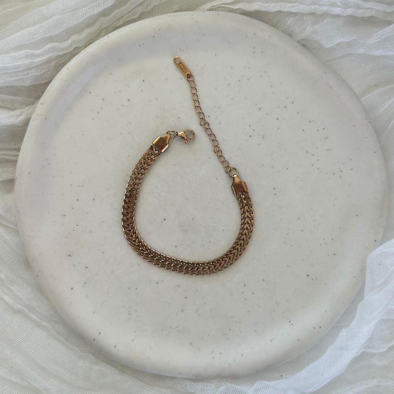 Ατσάλινο βραχιόλι με λεπτή τρακτερωτή πλέξη.