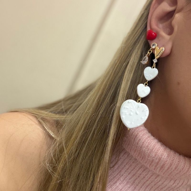Χειροποίητα σκουλαρίκια με καρδιές απο πέρλα του γλυκού νερού , λαμπερό ζιργκον και επιχρυσωμένη βάση