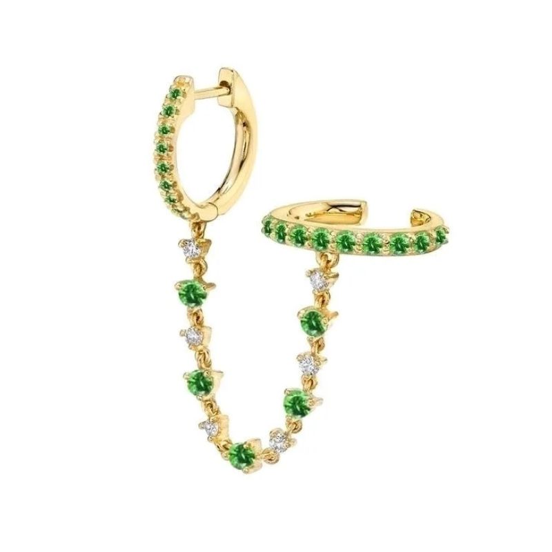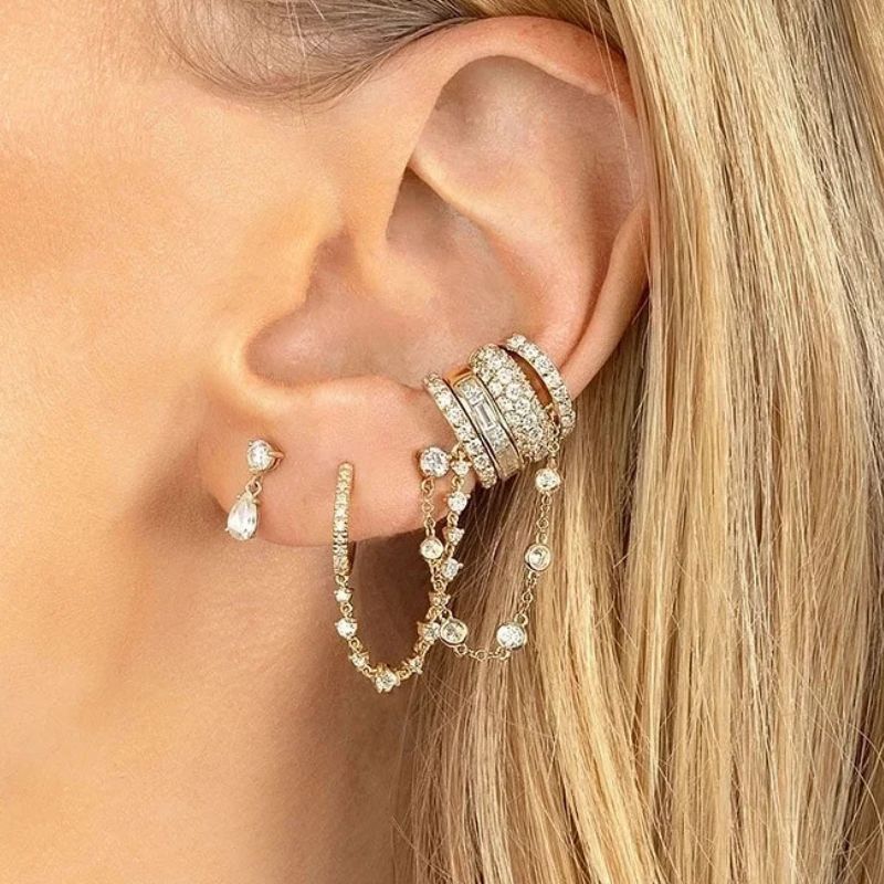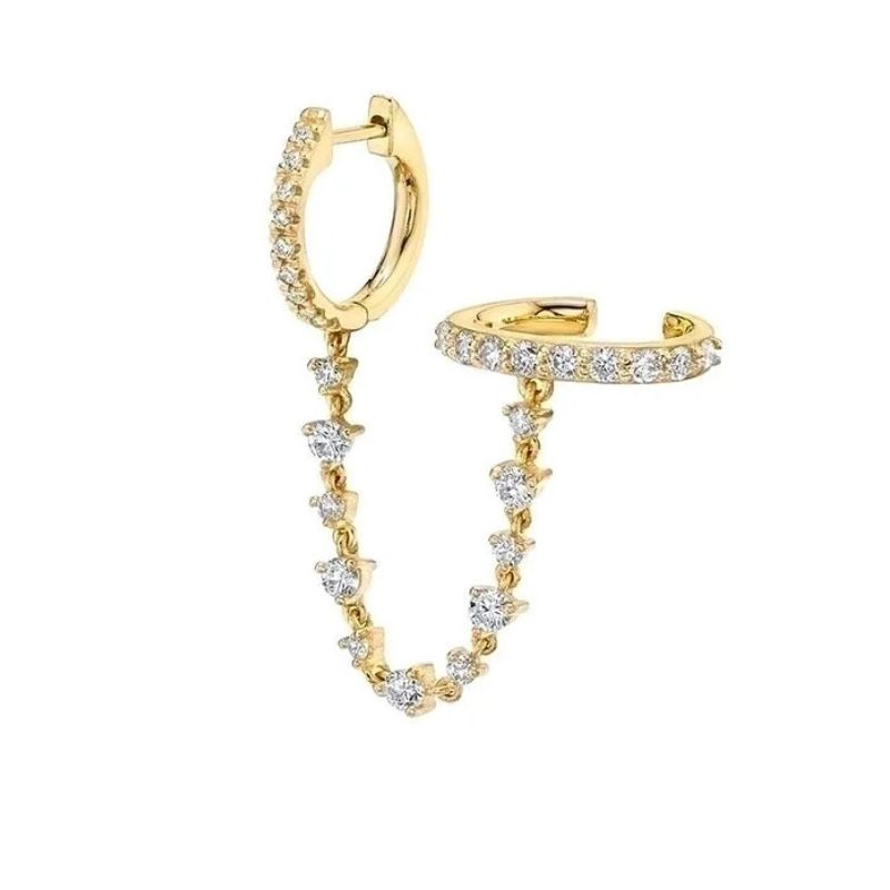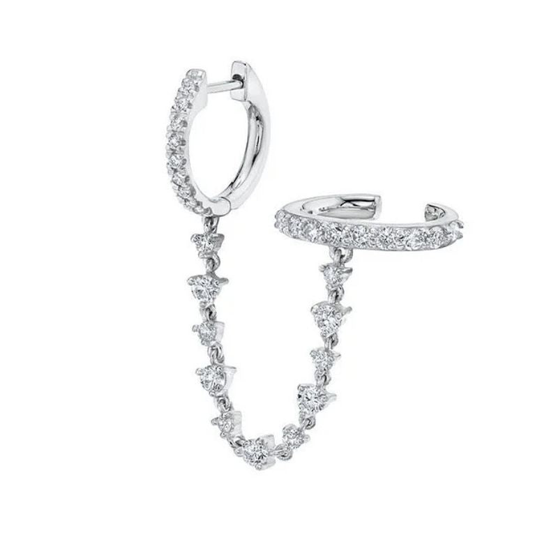 Ασημένιο σκουλαρίκι S925  με βελόνα και διπλό κλιπ αυτιών με διαμάντια.