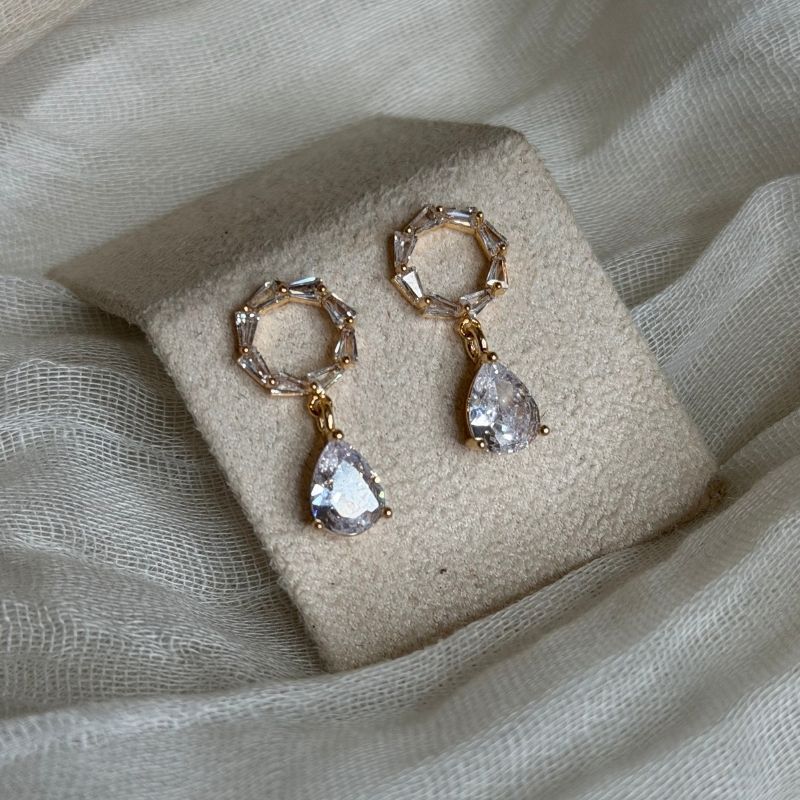 Σκουλαρίκα καρφωτά σε χρυσό με λευκά swarovski .