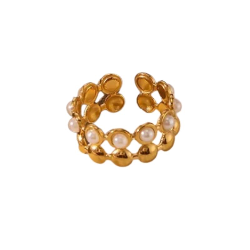 Ατσάλινο ρυθμιζόμενο δαχτυλίδι με την μια σειρά στολισμένο με πέρλες .Η απόλυτη elegant επιλογη για την έξοδο σου!